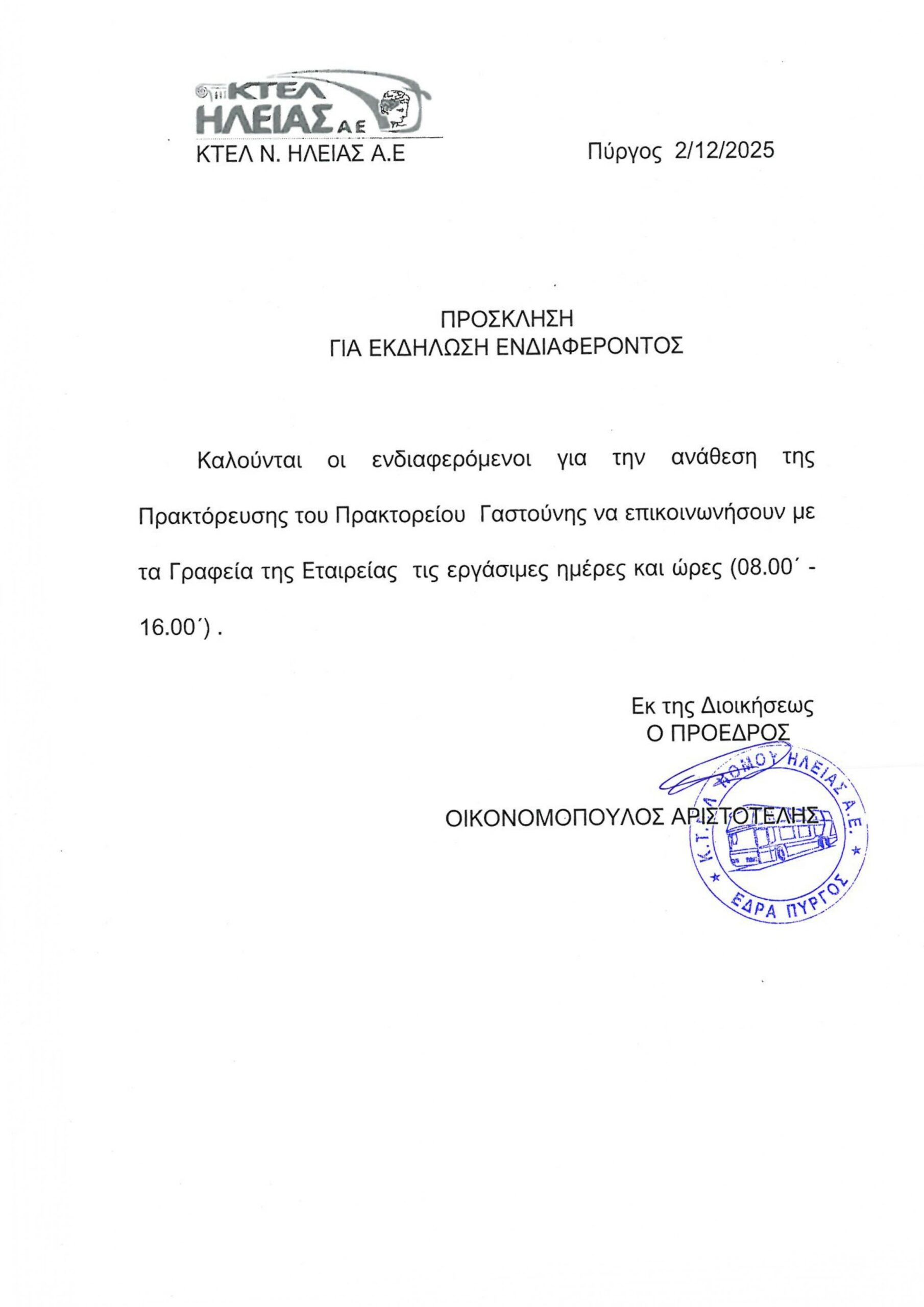 ΠΡΑΚΤΟΡΕΙΟ ΓΑΣΤΟΥΝΗΣ – ΕΚΔΗΛΩΣΗ ΕΝΔΙΑΦΕΡΟΝΤΟΣ