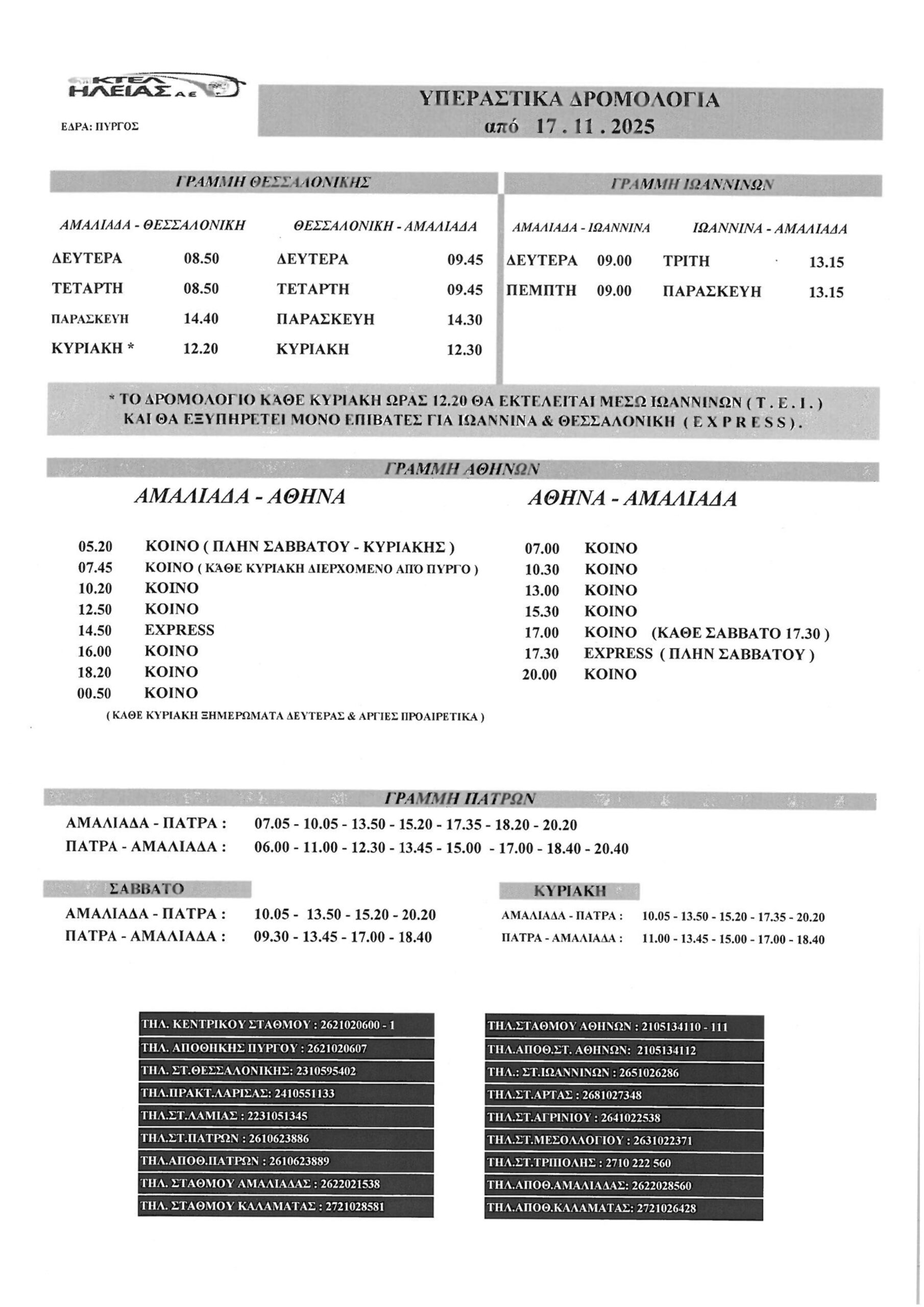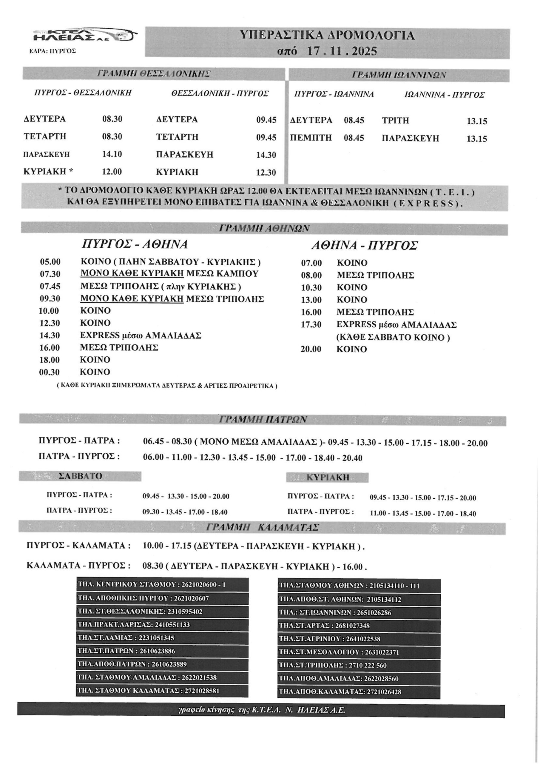 ΔΡΟΜΟΛΟΓΙΑ ΓΡΑΜΜΗΣ ΑΘΗΝΩΝ ΑΠΟ 17/11/2025