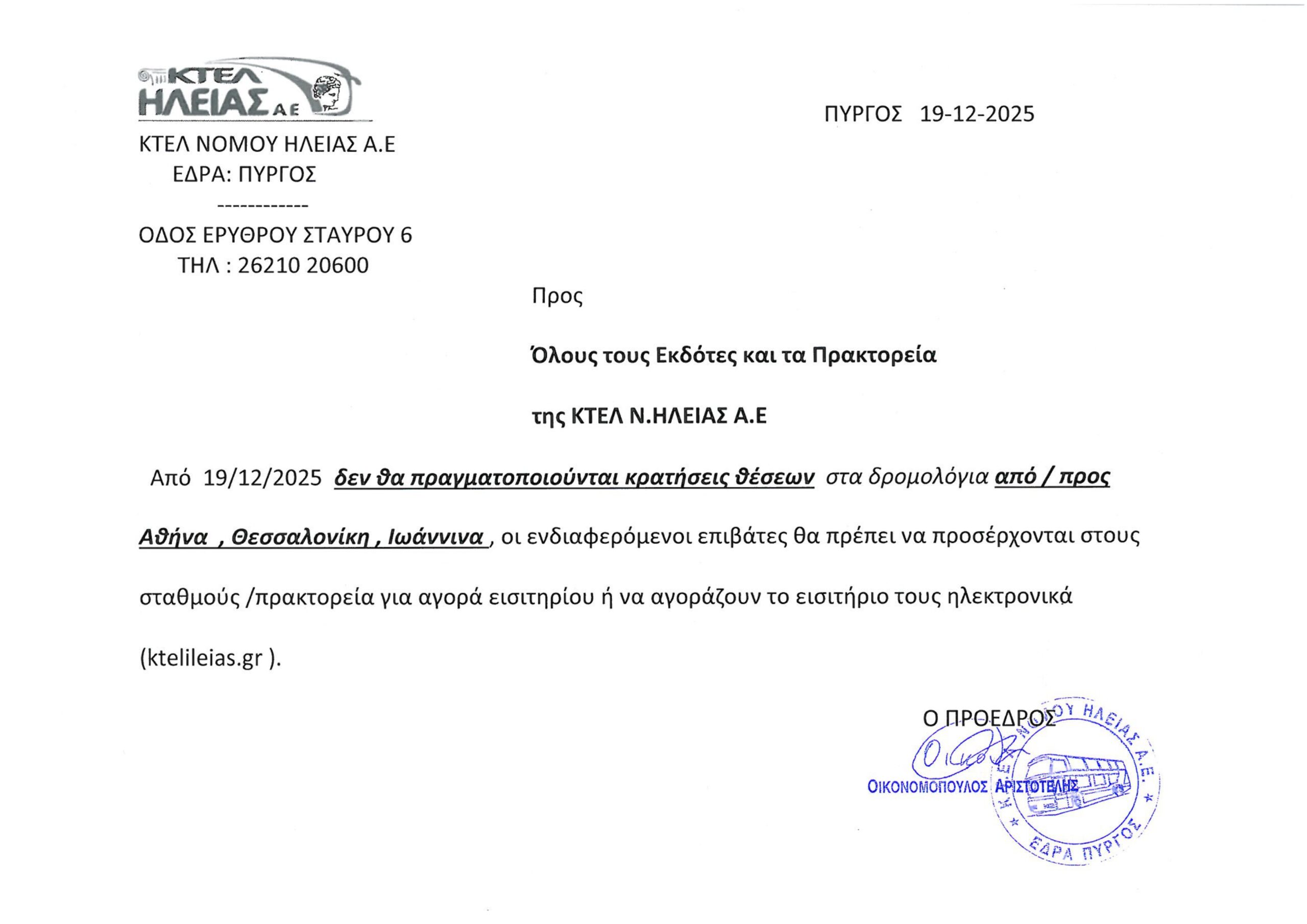 ΚΡΑΤΗΣΕΙΣ – ΑΝΑΚΟΙΝΩΣΗ