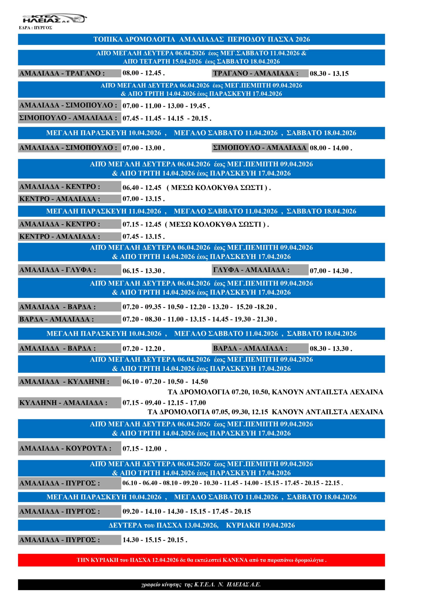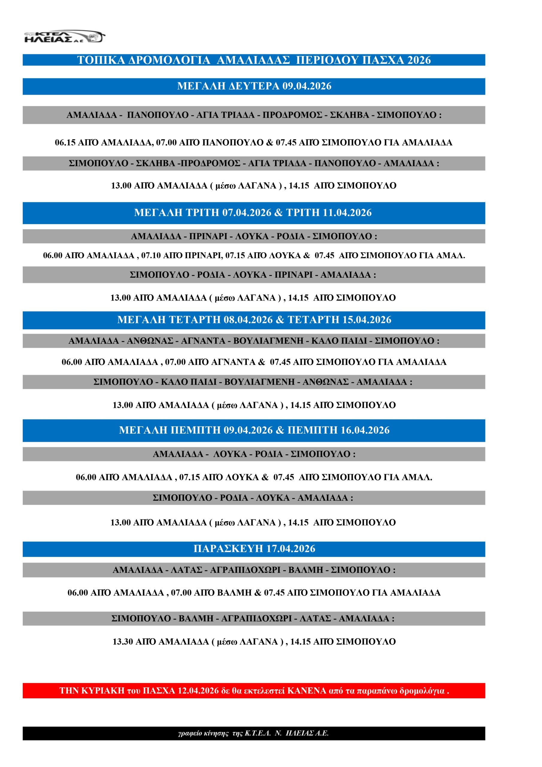 ΠΑΣΧΑ ΤΟΠΙΚΑ – ΑΣΤΙΚΑ – ΠΥΡΓΟΥ / ΑΜΑΛΙΑΔΑΣ